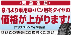 昨日から開催中の『タイヤ大商談会』 たくさんのご来店、ありがとうございます(^O^)/ 時間帯によっては待ち時間が発生してしまい、 ご迷惑をお掛けしたお客様、申し訳ありませんでしたm(__)m 明日からの平日も引き続き開催中ですよ!! 夏タイヤだけでなく、スタッドレスも大特価です!! 値上がり...