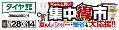 明日、7月28日(金)~8月14日(月)まで集中得市を開催いたします。 夏休み本番を迎え、皆さんお出掛けモードだと思います。 そこで!タイヤ館ではレジャー、帰省前に『安心安全』のご提案です。 大丈夫でしょ、が取り返しのつかない事に・・・。 なんて事にならない様に、愛車のメンテナンスを...