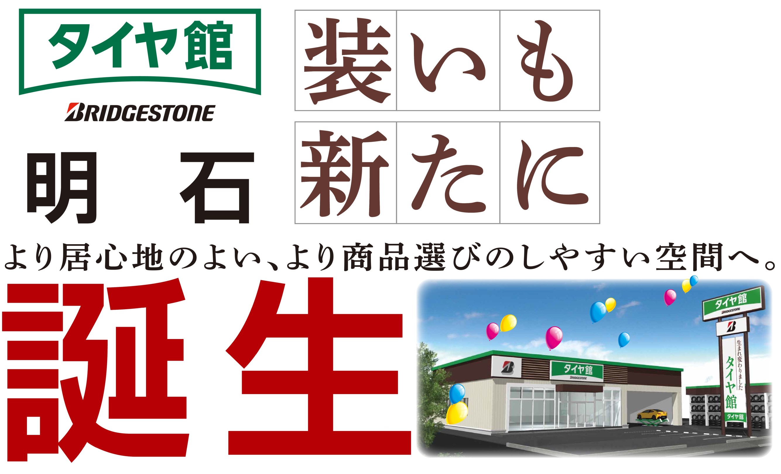 明けましておめでとうございます。 今年も当店はブリヂストンのタイヤ専門店として、お客様に 価値の高い商品、サービスを提供できますよう、スタッフ一同 全力で取り組んでまいります。 本年も当店をどうぞよろしくお願い申し上げます。 タイヤ館 明石店 スタッフ一同