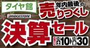明日12月10日(土)から30日(金)まで 年内最終売りつくし「決算セール」開催します!! 当店在庫商品すべてがセール対象です。愛車無料点検や 空気圧点検だけでもお気軽にお申し付け下さいね! スタッフ一同お客様のご来店を心よりお待ちしています。