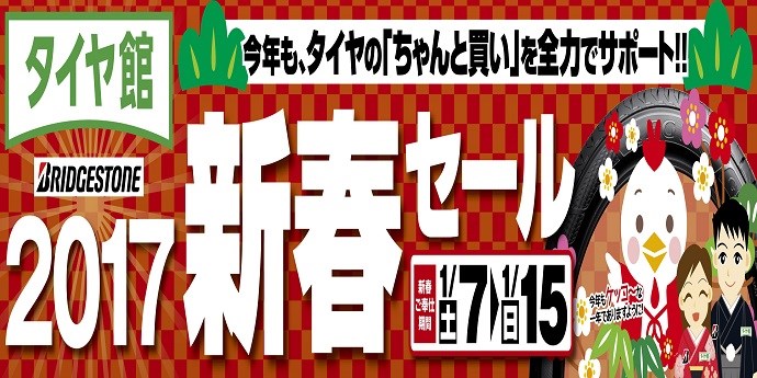 1月7日(土)から15日(日)まで新春セールを開催します! 夏タイヤやスタッドレスタイヤなどお買得品が満載!! 期間中タイヤ4本お買い上げいただいたお客様、先着50名様 に「空くじなし」の抽選会を実施します! ぜひこの機会にお買い求めください。 スタッフ一同お客様のご来店を心よりお待ち...