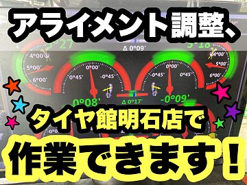 みなさまこんにちはっ 兵庫県明石市の藤江にございます、 タイヤ館明石店スタッフのよしだです(●'◡'●) みなさまいかがお過ごしでしょうか? さて本日ご紹介致しますのは アライメント調整デス! みなさま、そもそも『アライメント』とは何か ご存じでしょうか? アライメントとは車のタイヤの向きや...