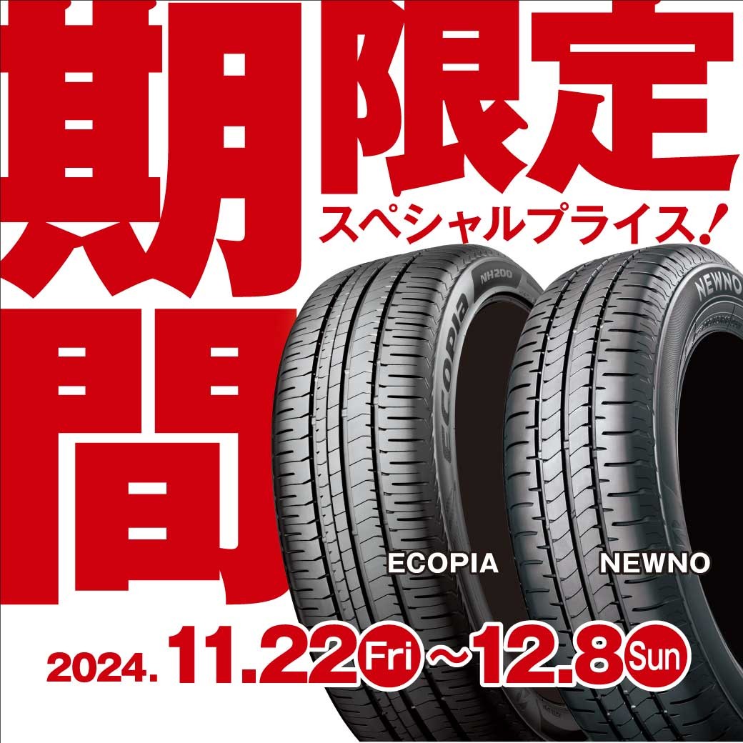 ブリヂストンのタイヤ専門店! 年に一度のブラックフライデーセール開催中です! 蔵出し品は、最大40%OFFにてお買い得提案を実施しております。*蔵出し品は在庫限りとなります。 今回のセール期間は、11月16日~11月30日まで このお買い得期間をお見逃しなく!!