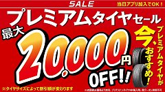セール期間中は、 『タイヤ館アプリ』会員様限定で、 タイヤのサイズ別にて、最大20,000円引きとなる、 ブリヂストンタイヤの割引クーポンをプレゼント! さらに、アプリ内での抽選で、 エンジンオイル・バッテリー・エアコンフィルター・ワイパーなど、 メンテナンス商品・サービスなどなど、最大2...
