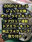 さて今回は、トヨタハイエース200系に色々装着しました! フラフラフワフワする乗り心地の改善に、 KYB NEW SR スペシャル ショックアブソーバー交換。 長距離ドライブの多いオーナー様で、 このお車にはオートライトが付いていないくて、 トンネルごとのオンオフが大変ということで、 ブルコン ラ...