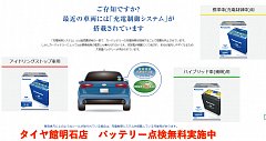 ありがとうございます。タイヤ館明石店の店長の高橋です。 日中は熱くなってきましたね。車での移動でもエアコンをかける事も増えてきたのではないでしょうか? そこで注意してほしいのが、車のバッテリーです。最近のクルマは、バッテリー消費も厳しいと考えます。 まずは、いまのお客様のバッテリ...