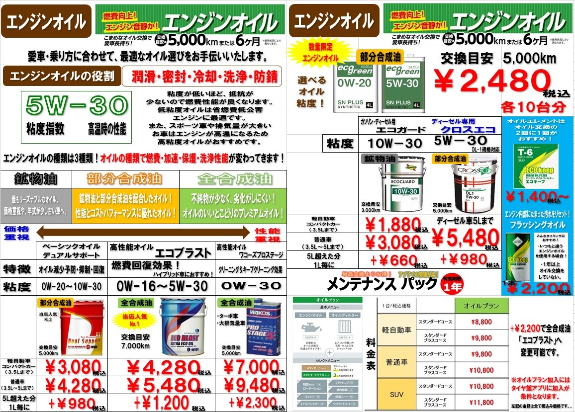 オイル交換は単品交換もできますが、【デュアルサポート】【エコブラスト】なら、メンテナンスパックがお得です!