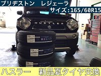 車検で入庫したハスラーですが、夏タイヤの交換が必要とのことで、 ブリヂストンのGRレジェーラをご成約頂きました! GRレジェーラはレグノのシリーズの軽自動車専用タイヤです。 ブリヂストンが考えるタイヤに大切な7つの性能が総合的に高く、安全性以外にも静粛性・乗り心地も重視し作られていま...