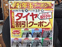 ただいま、ご来店いただいたお客様に「当日使える」お年玉クーポンを配布中です。 対象商品は、スタッドレスタイヤをはじめ、夏タイヤも対象となります。 ブリヂストンのプレミアムタイヤがお得に購入出来るチャンスです!!! また、カーメンテナンスクーポンも配布中! エンジンオイル交換や、バ...
