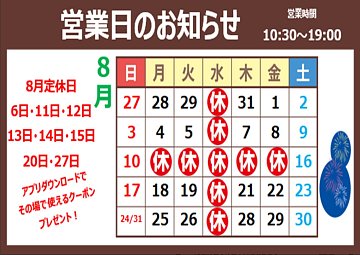 本日は定休日になります。 8/7(木)からの営業になりますので よろしくお願い致しますm(__)m