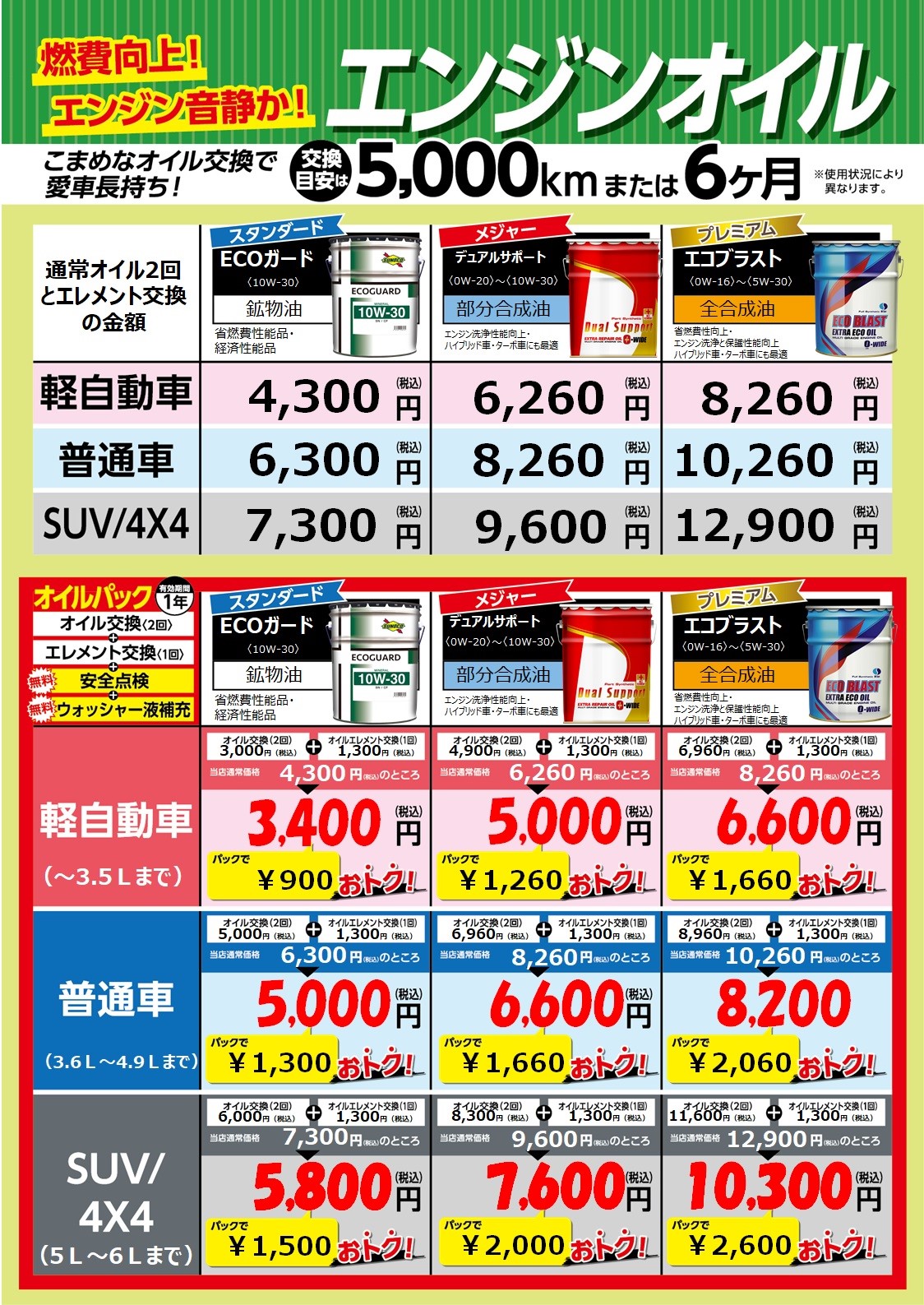 [オイル2回+エレメント交換1回]の【オイルパック】発売です!