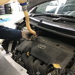 車検でお預かりしているヴィッツのオイル交換をしました。 型式、年式からオイル粘度を調べてみると、0wー20でした。柔らかめのオイルですね。 古いオイルを抜いた後に0wー20の適合オイル【エコブラスト0-WIDE】を入れていきます。 エレメント(オイルのフィルター)も交換しました。 車種: トヨタ ヴ...
