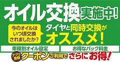 ただ今、新品のタイヤ交換か持ち込みの夏タイヤの交換と一緒にエンジンオイル交換をして頂くと、オイル交換料金が通常価格より10%オフ! エンジンオイルの無料点検もできますので、この機会にぜひご利用ください( ^ω^ )