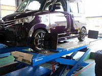 車種:日産 デイズルークス 足回りを交換したということで、アライメントの調整を行いました。 タイヤの向き、角度などを測定すると大幅に基準の数値からずれているわけではありませんでしたが、基準値内にしっかりと調整しました! 作業時間は1時間ほどでした!