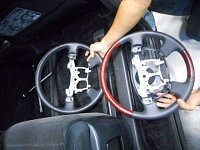 車種:アルファード 純正品(左)からデザインの違う純正品(右)に交換しました。 シックでかっこいいですね^^ エアバックがあるので、慎重に作業を行いました・・・。 作業時間:約30分で取付完了です!