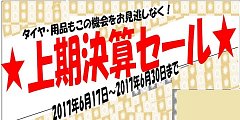 ただいま、上期決算セール開催しています!タイヤ・用品がお得!