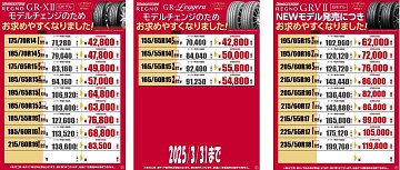 タイヤ館秋田東通のホームページを ご覧いただきありがとうございます。 在庫限りのレグノシリーズがお買い得!! モデルチェンジの為このタイミングでしか 提示できない価格です(≧◇≦) 夏タイヤは6月からの値上げが 発表になりましたので、早めの今が 選べるチャンス!! 冬タイヤも9月に値上がり...