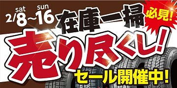 タイヤ館秋田東通のホームページをご覧いただき誠にありがとうございます。 2/8から2/16まで《在庫一掃セール》を開催します! 夏タイヤ、冬タイヤ、アルミホイール、用品など在庫品がお買い得!! 一足早く春の準備をするのもオススメです(*'▽')♪ みなさまのご来店を心よりお待ちしております! ★W...