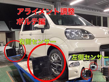 タイヤ館秋田東通店のホームページを ご覧いただきありがとうございます。 本日はトヨタ ポルテのアライメント調整です! タイヤの接地面積を増やし スタッドレスタイヤの性能を発揮させる為と タイヤの片減りを減らす為に 作業させていただきました!! タイヤ各所にセンサーを付けて 測定していき...