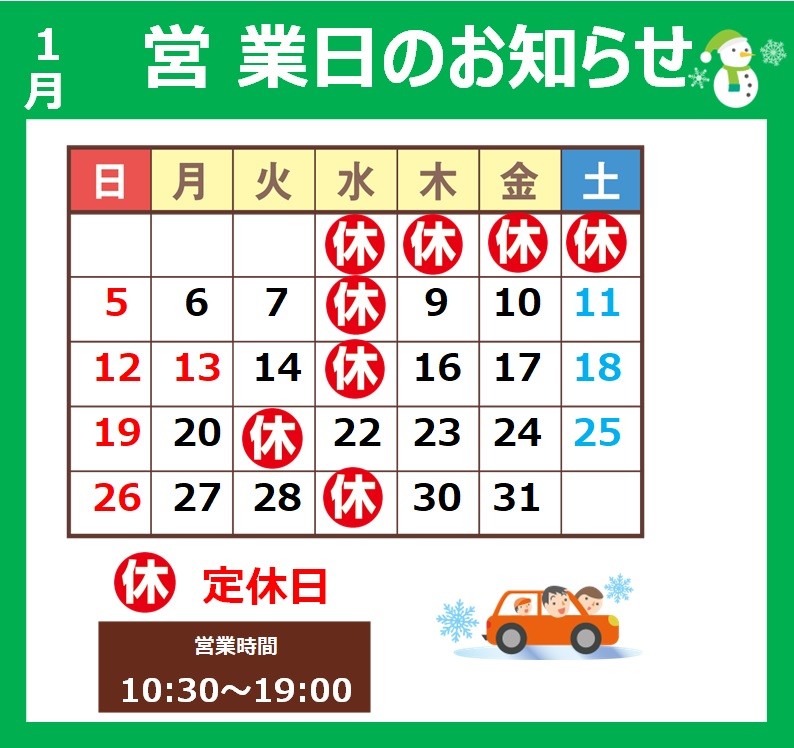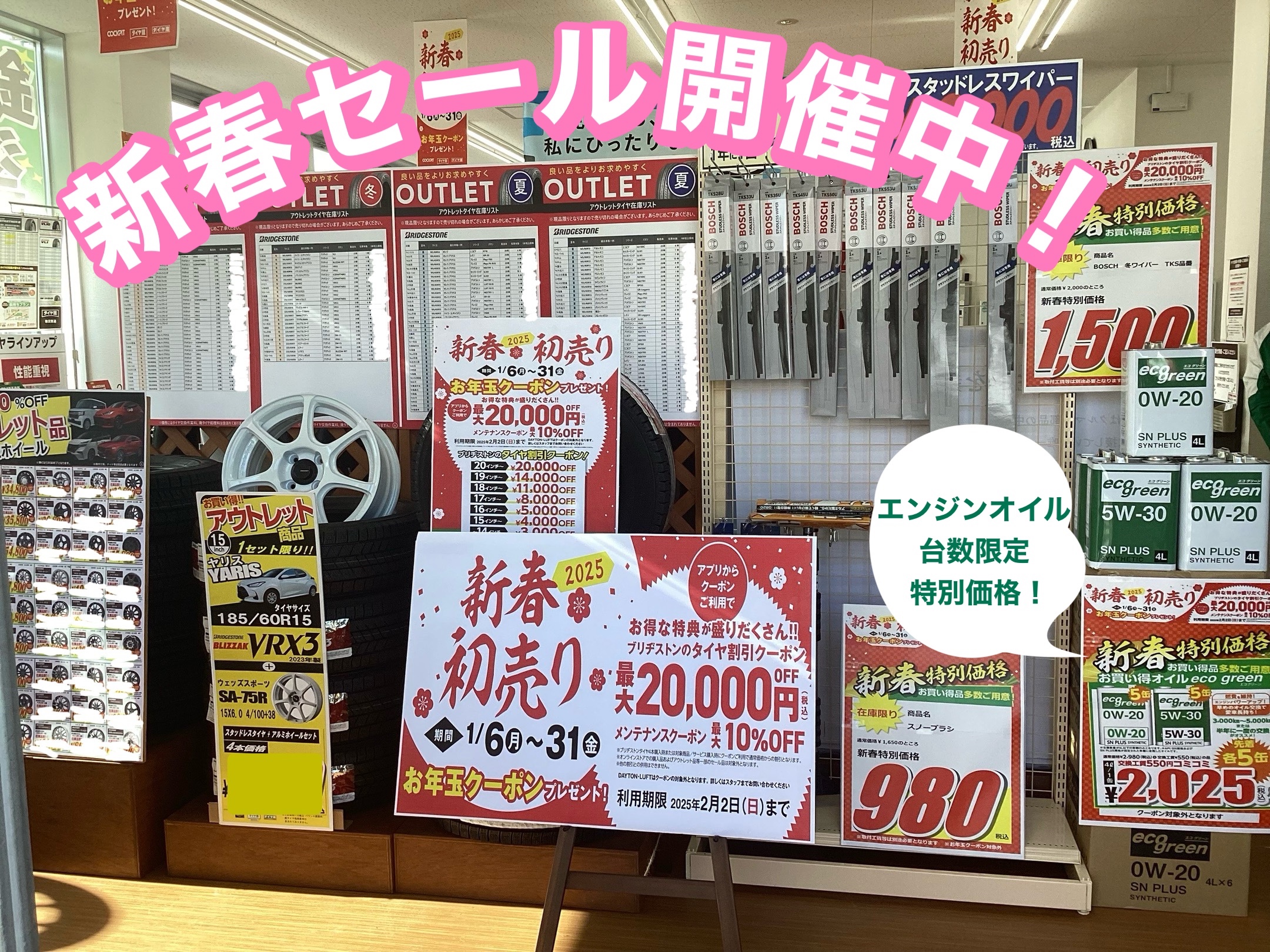 正月休みも終わり、今日から通常営業です。 そして明日1/6から新春セールを開催です! タイヤ館アプリのご登録で新春お年玉クーポンをプレゼント! 皆様のご来店をお待ちしております。