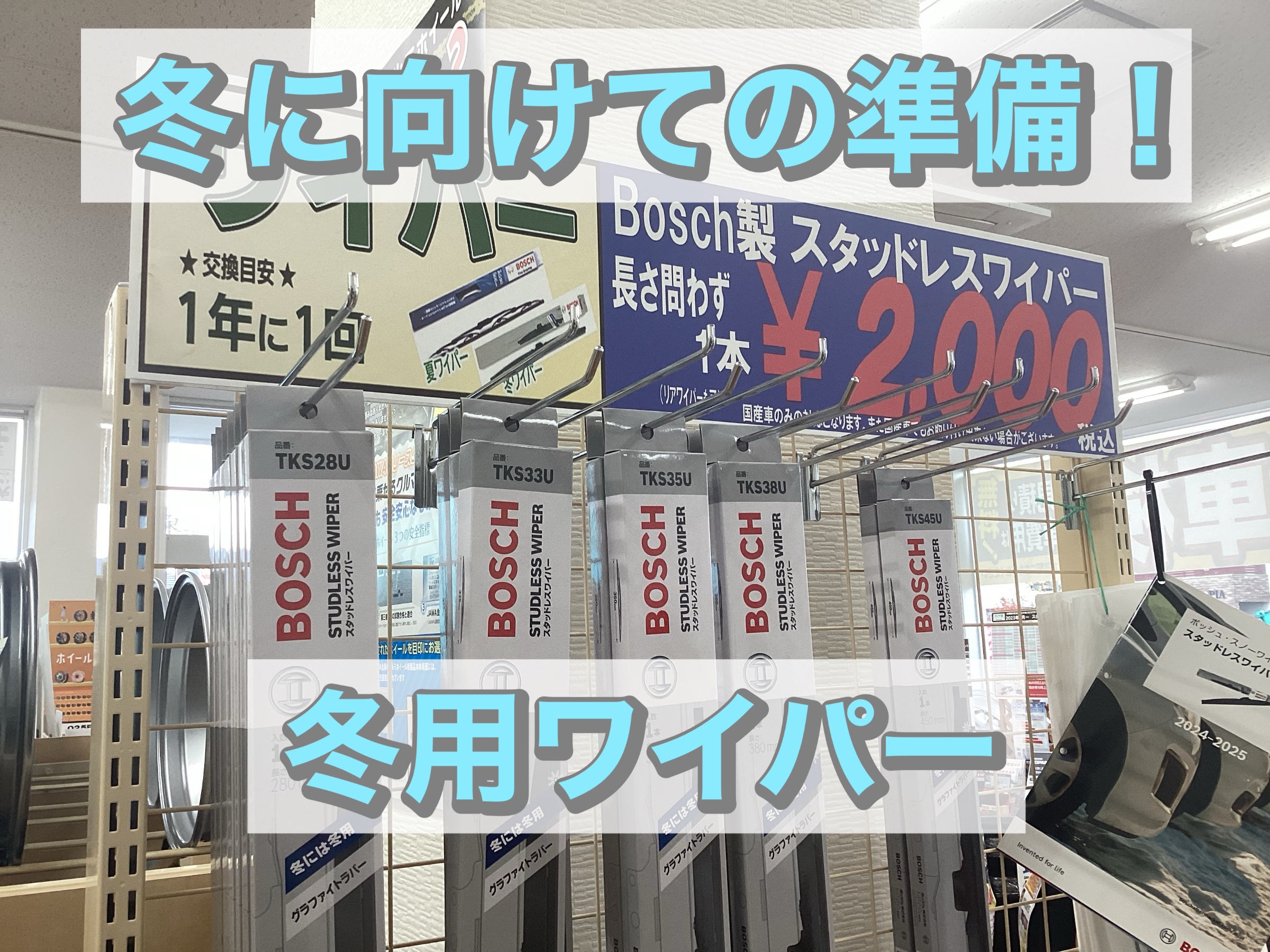 タイヤと同じく、ワイパーも冬用ワイパーに! ボッシュ製TKS品番の冬ワイパーを取り扱いしております。 冬の準備がまだの方は、雪が積もる前にいかがでしょうか?(^^)/ ワイパー交換料金 税込価格 ゴム交換 アプリ会員 ¥550/1本 アプリ非会員 ¥1,100/1本 本体交換 アプリ会員 ¥220/1本 ア...