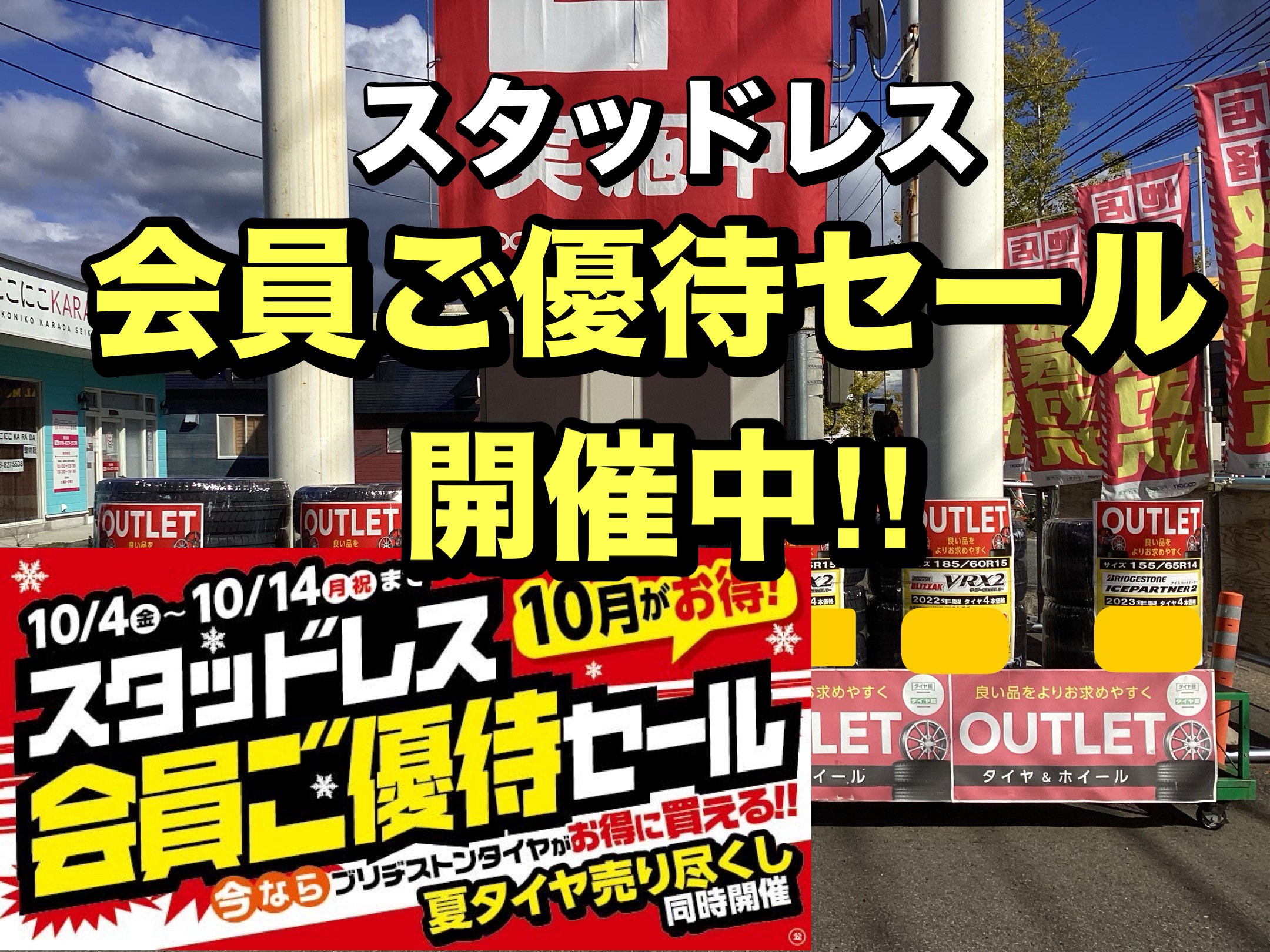 昨日より開催の【スタッドレス会員ご優待セール】、本日はさらにたくさんの方にご来店いただきました! タイヤの在庫はまだまだあります!お仕事などの休みが合わないな~という場合も10月14日(月・祝)まで開催していますので、お見積りだけ、当日のお持ち帰りや作業希望の方もご来店お待ちしてお...