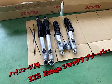 タイヤ館秋田東通店のホームページを ご覧いただきありがとうございます。 本日はハイエースのショック交換作業です! 商品 KYB(カヤバ)の ショックアブソーバー Extege(エクステージ) 減衰力調整付きの商品です。 交換前の純正ショック こちらはリア部分です。 リア交換後はこちら フロント交...