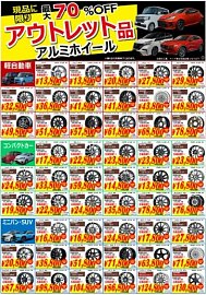 タイヤ館秋田東通店のホームページを ご覧いただきありがとうございます。 アルミホイールのアウトレット品もございます! こちらのチラシの品は格安で ご購入いただけます! 当店に在庫がない商品も 県外タイヤ館からお取り寄せできます。 売れてしまえば手に入らないこの価格!! 衝撃の価格もご...