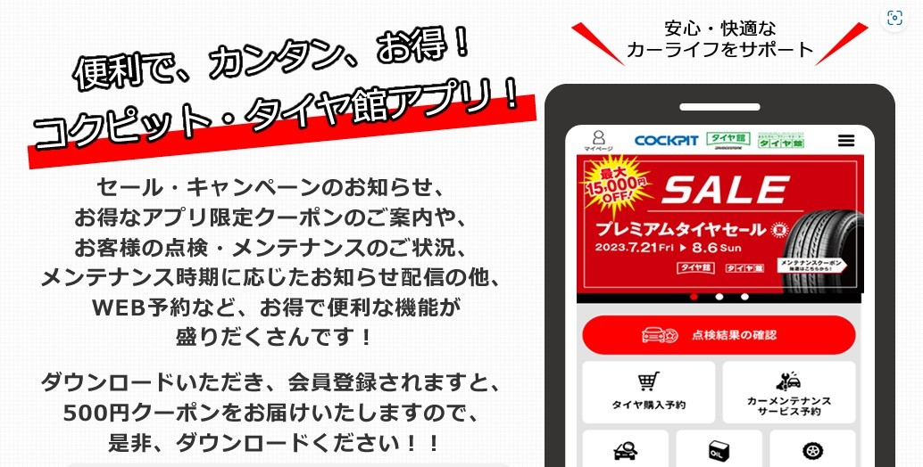 便利機能満載!【タイヤ館アプリ】アプリ会員は工賃割引など特典も!