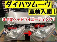 本日はダイハツムーヴのお客様が車検入庫です! 当店から安心の整備認証工場へお取次! メンテナンス品の点検は当店で! 車検整備は認証工場での作業となります。 ヘッドライトのくすみが気になったので、まずは ヘッドライトコーティング! くすみがとれ、かなりクリアになりました。 光量UPで夜道...