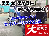 タイヤが安く買える春の大商談会開催です! 夏タイヤだけでなく、冬タイヤも在庫処分価格になっております。夏冬同時購入もぜひこの機会に! 商談会の案内ハガキが届いた方は、さらに特典ありますのでぜひご持参くださいね(*^-^*) *セール期間中の3/12(火),3/19(火)は定休日となっております...