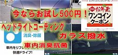 お年玉ワンコインクーポン獲得はこちらから! お年玉メンテナンスワンコインクーポンで、 【ヘッドライトコーティング】 【ガラス撥水】 【車内消臭除菌】 が、500円で施工できます! 気になっていたけれど、通常料金だとちょっとお高いかな?と感じていたなら、施工後どれくらい持つのか、自分の車...