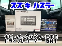 本日はスズキハスラーのお客様へ用品を いろいろお取付です! お車は新車で当店でいろいろご成約いただきました。 カロッツェリアのナビにバックカメラ・ETC! コムテックの前後録画タイプのドラレコをお取付! バックカメラはキットを使い純正と同じ場所へ! ドラレコは安心の日本製で駐車監視機能...