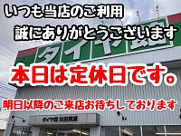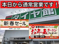 正月休みも終わり、今日から通常営業です。 そして本日から新春セールを開催です! 新春特別お年玉クーポンをプレゼント! タイヤがお得に買える特別月刊!!! 皆様のご来店をお待ちしております。