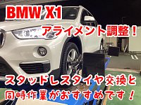 本日はm BMW X1のお客様へスタッドレスタイヤと アライメント調整をご成約です! 取付商品 VRX2 225/55R17 アライメントとはタイヤの角度や向きを調整する 作業です。 タイヤの向きや角度のズレがなくなると、タイヤの 片減りを抑えられ、タイヤ寿命がUP! また、路面にタイヤ全体がしっかりと密着...