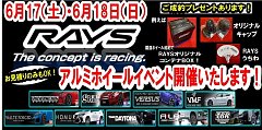 緊急告知!!!6月17日・18日 レイズアルミホイールイベント開催いたします!