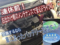 いよいよ来週の土曜日からGW突入です! お車での遠出を予定されている方もいると思いますので、GW前に 当店でおすすめ点検・メンテナンスをご紹介! ① 空気圧点検とタイヤ点検 ② エンジンオイル交換・点検!エンジントラブルと燃費の悪化を防止! ③ 遠出先でのバッテリートラブルは致命的…。 ④ 雨の...