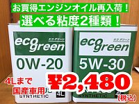 数量限定でお買得エンジンオイル、エコグリーン再入荷です! 各限定 10台分となります。 4Lまでの国産車は1台分で2,480円(税込) ※ 交換工賃込み。エレメント交換の場合は別途。 オイル粘度は0W-20、5W-30の2種類です!! 基本はスタッフがお車に最適な粘度を選択し交換致しますが、 粘度の指定があ...
