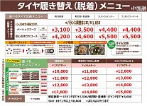 【冬タイヤから夏タイヤ】への【タイヤ履き替え料金表】
