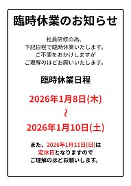 臨時休業のお知らせ