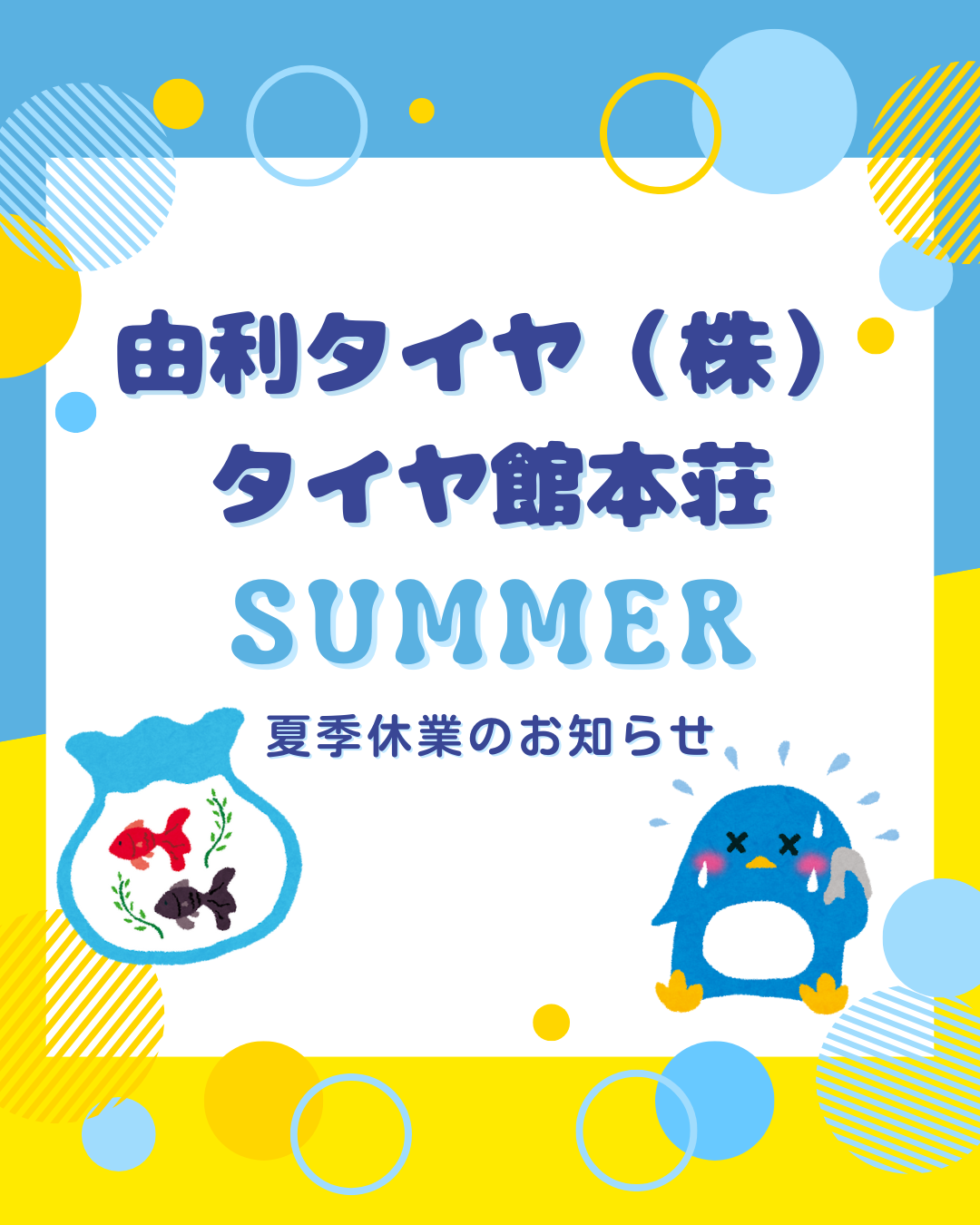 夏季休業のおしらせ ポスト 2025年8月8日 改めまして夏季休業のお知らせとさせていただきます。 1週間と長期のお休みとなります。 普段ご利用されていただいているお客様には大変ご迷惑、ご不便おかけしますが 何卒、今後ともよろしくお願いします。 カテゴリ:お知らせ 点検 担当:熊谷