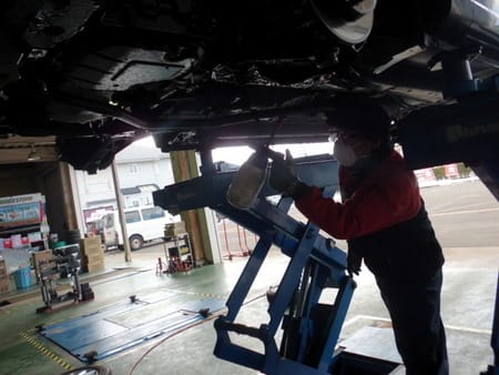 本日はミラココアに防錆剤の施工をさせていただきました!
