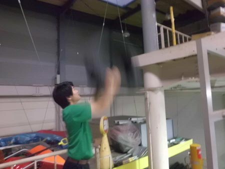 ちなみに今日は2階から3階へタイヤを上げる作業をしました!!