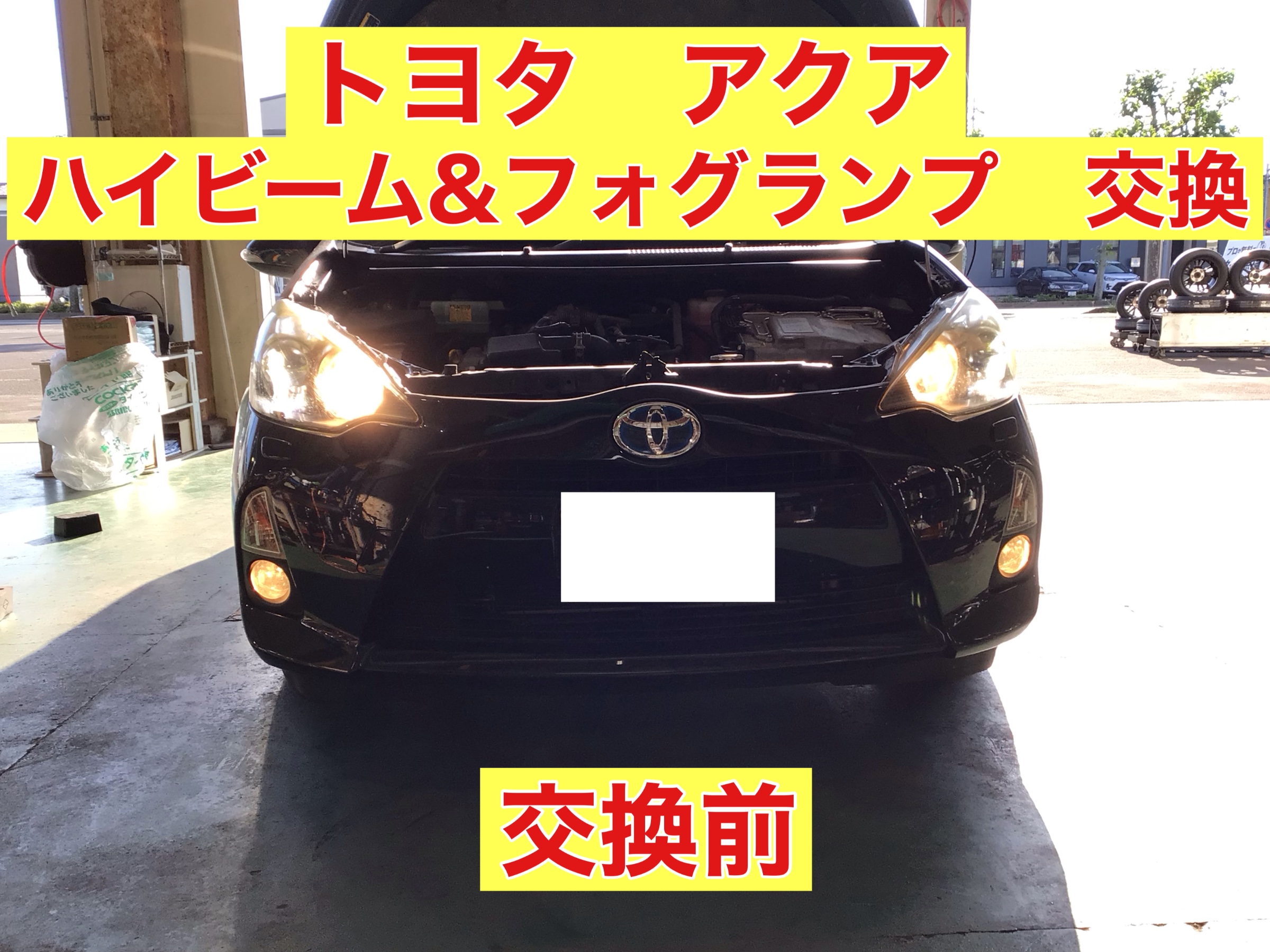 今回のご紹介はトヨタ アクアのハイビーム&フォグランプ交換です。