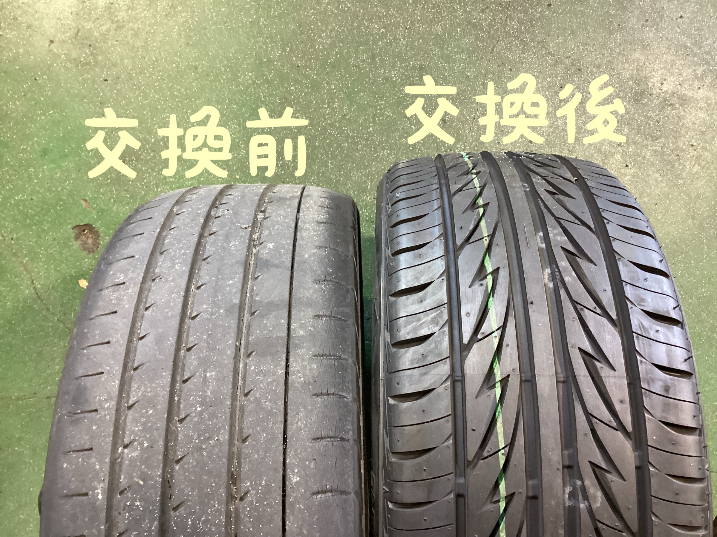 持ち込み新品タイヤに交換でしたが、やはり交換前のタイヤのトレッド部、ショルダー部がかなり減っています!!