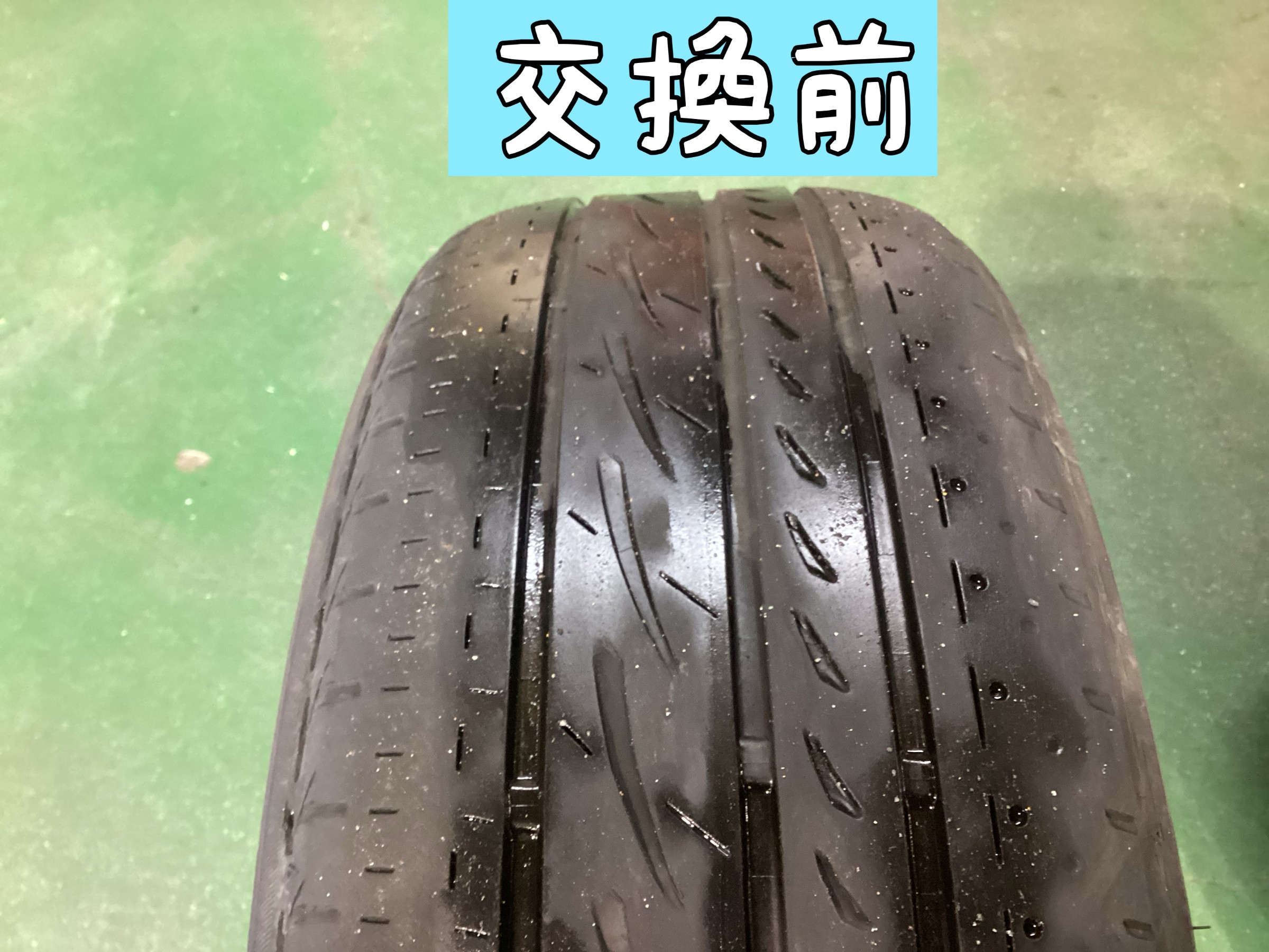 交換前をみてみるとタイヤ溝が減っているのがわかります!( ;∀;)