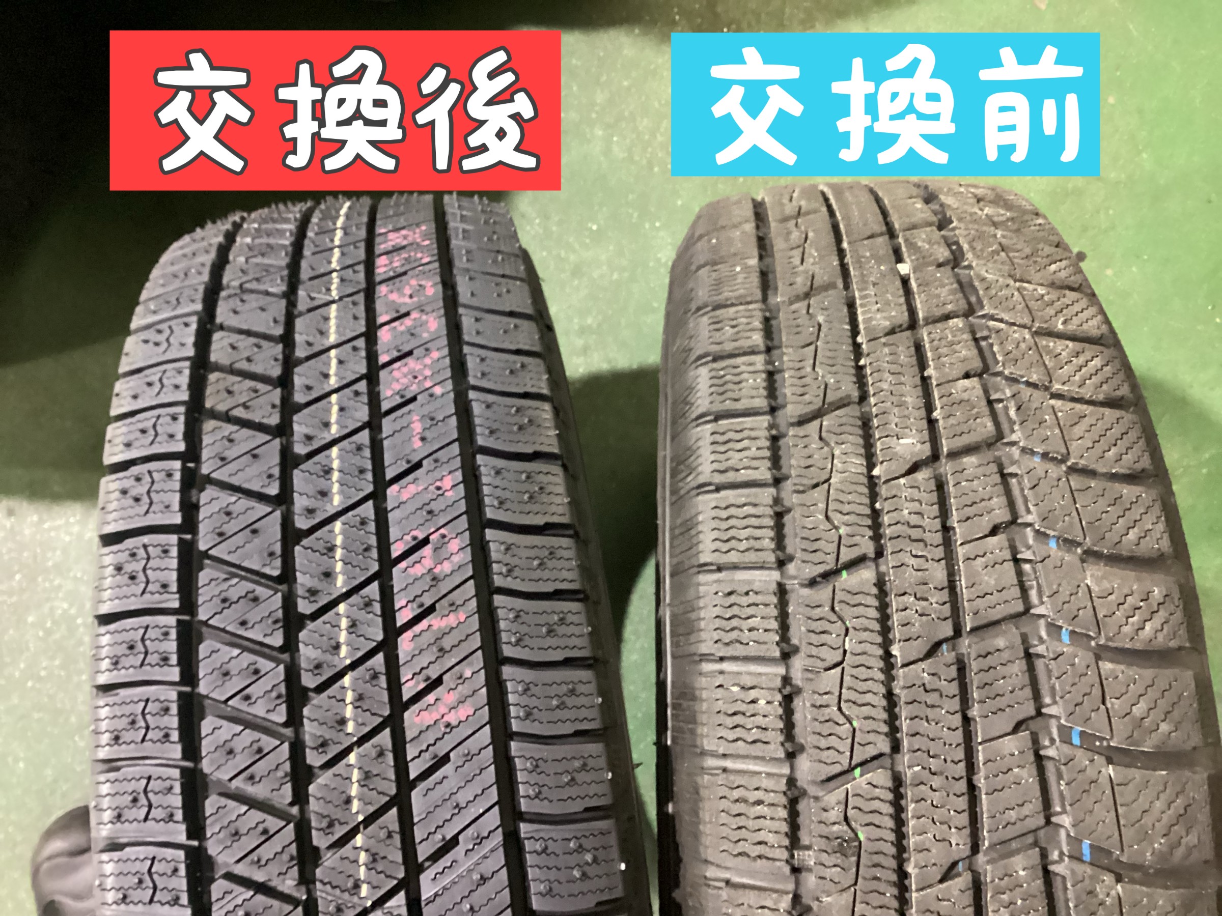 溝が残っていても4年~5年経過しているタイヤはトレッド面のゴムが固くなってしまってる場合があるので要注意ですね!