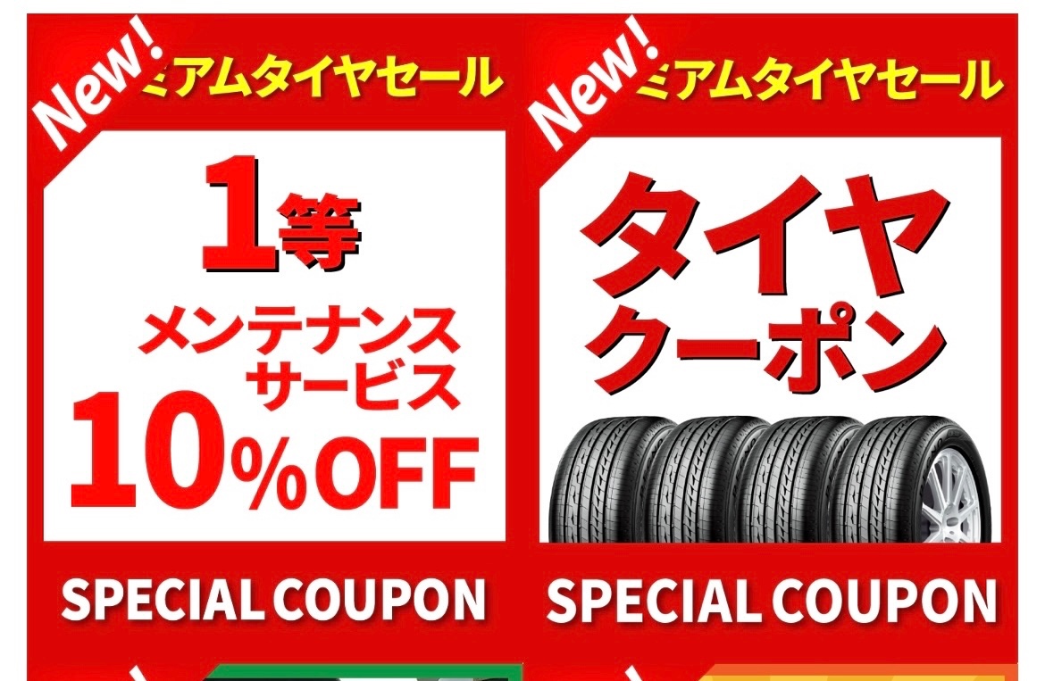 【プレミアムセール】 タイヤクーポン&メンテナンスクーポン配信中♪
