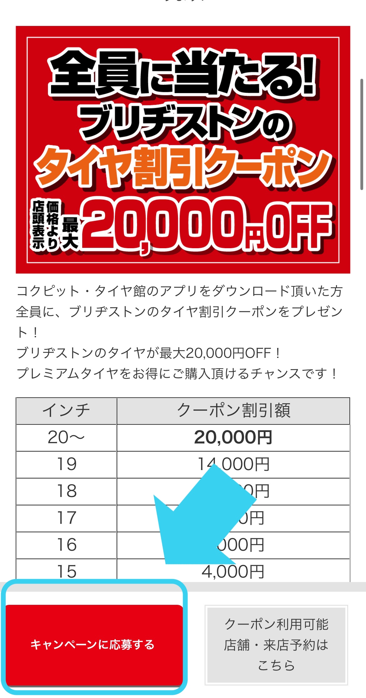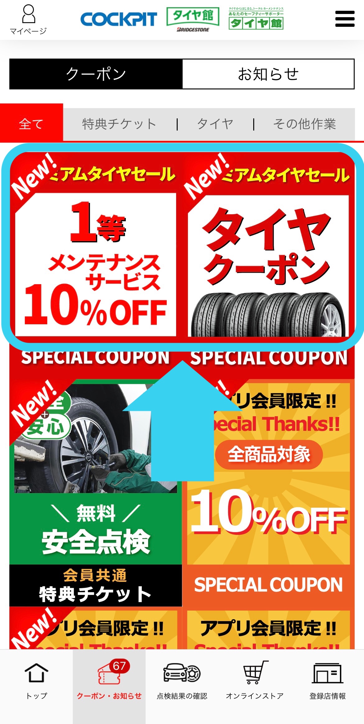 (タイヤクーポンはこの時点でアプリに反映されます)
