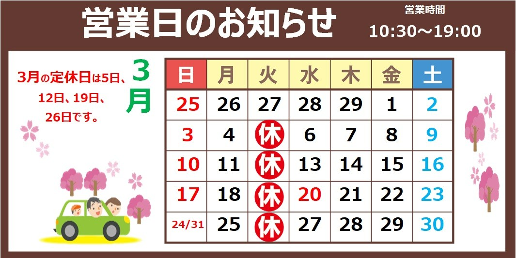 定休日は5日・12日・19日・26日となります。